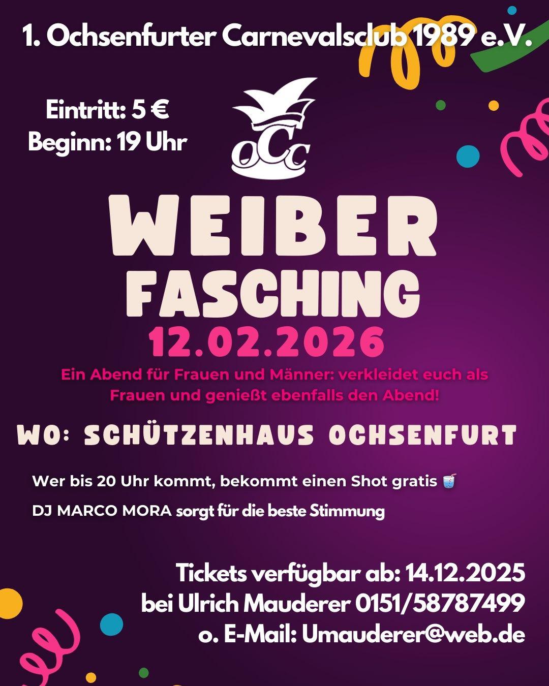 Neu in diesem Jahr veranstalten wir unseren OCC-Weiberfasching.