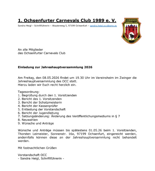 Alles was der Ochsenfurter Carnevals Club zu bieten hat könnt ihr auf unserer OCC-Prunksitzung sehen.