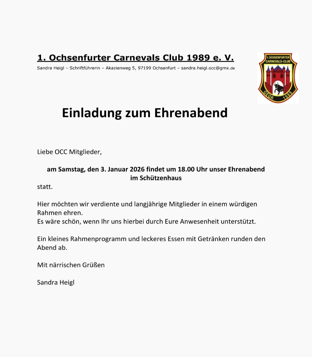 Ein Vertreter des Fastnachtverbandes Franken wird uns an diesem Abend dafür besuchen und ein kleines Programm rundet den Abend ab.